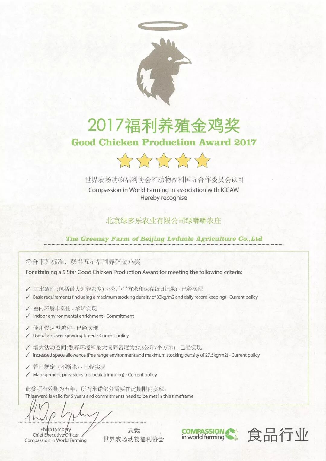 1927年北京油鸡在德国举办的国际博览会上获得过“金奖”,90年后,2017年6月28日,英国伦敦,绿多乐在“2017年世界动物福利(CIWF)全球颁奖典礼”上,捧得了国际***别的“福利养殖金鸡奖”和“福利养殖金蛋奖”,这两项奖项均属于五星级(国内罕有)。