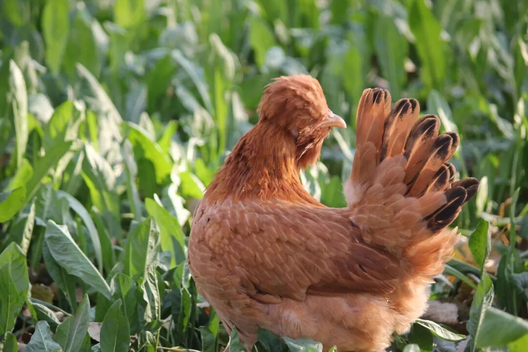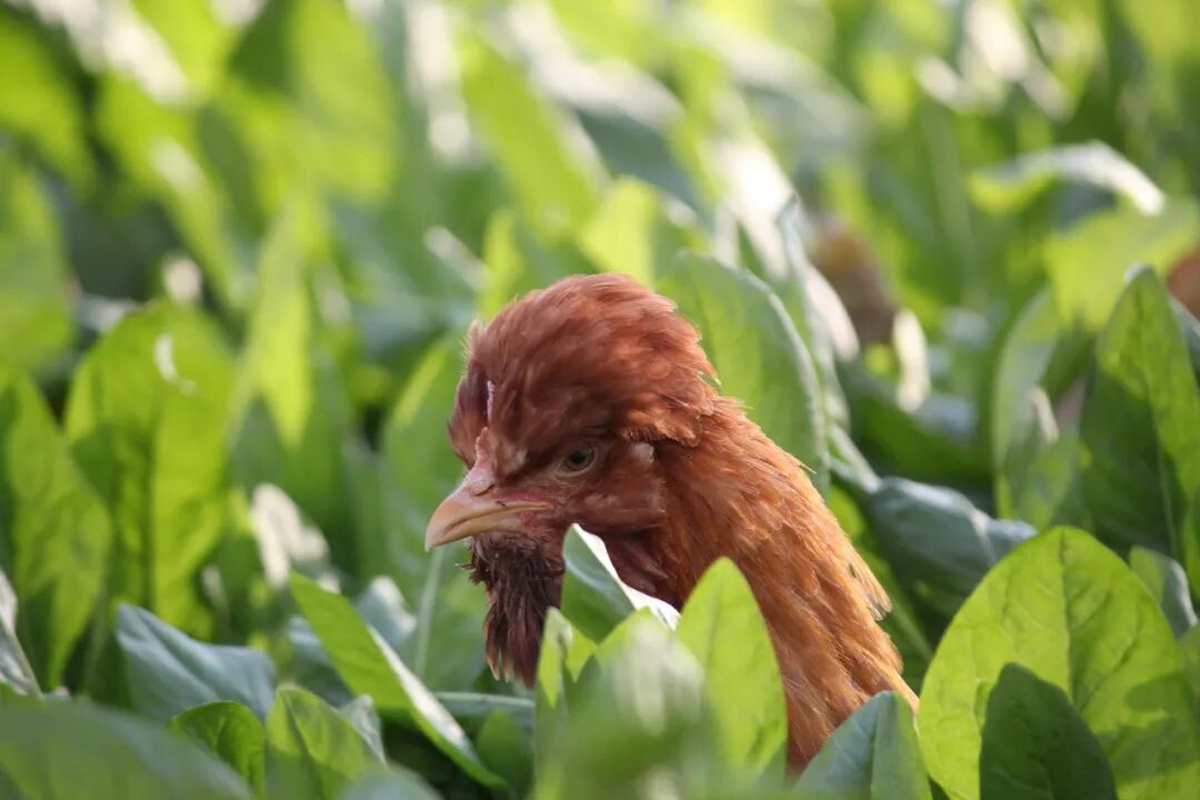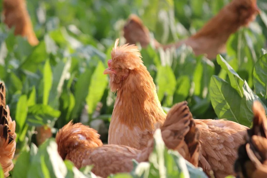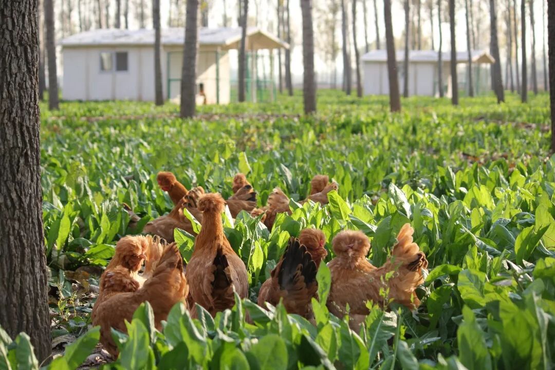 在农科院的技术指导下,农庄严格遵守科学散养的方法,拒绝激素、抗生素,以提高油鸡身体体质为根本,专心为它们打造舒适合理的林下环境,喂养优质玉米、豆粕,辅以蔬菜,同时自行选育孵化黄粉虫作为油鸡的蛋白营养补充,搭配益生菌发酵饲料,同时在林下种植新西兰菊苣草、万寿菊花,为油鸡打造了一个草虫飞舞、阴凉舒适的自然放养地。