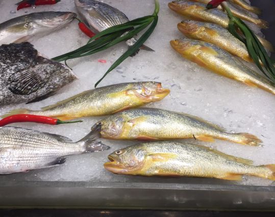 而市场上有三类黄花鱼,一种是纯野生黄花鱼、一种是半养殖半野生黄花鱼、一种就是网箱养殖的黄花鱼,网箱养殖以福建宁德最为出名。当然,女船家的黄花鱼,那一定是真真实实的海捕野生黄花鱼。养殖和野生黄花鱼的价格差距很大,所以市场上也是鱼目混杂,将养殖的混为野生的。如何辨别呢?口感上,对于海岛人来说,最犀利的莫过于舌头,由于长期吃野生海鱼,那味道早已根植在舌头上,所以吃就能分别出八九分了。黄花鱼从三个方面辨别:体形、体色和嘴巴。野生黄鱼体瘦且较狭长,肉细腻,体色呈金黄锃亮,嘴巴有鱼鳔外吐,这是离开深水区外气泡爆裂所致。养殖黄鱼体胖,尤其是肚皮大而短圆,体色较淡且嘴巴没有鱼鳔外吐。