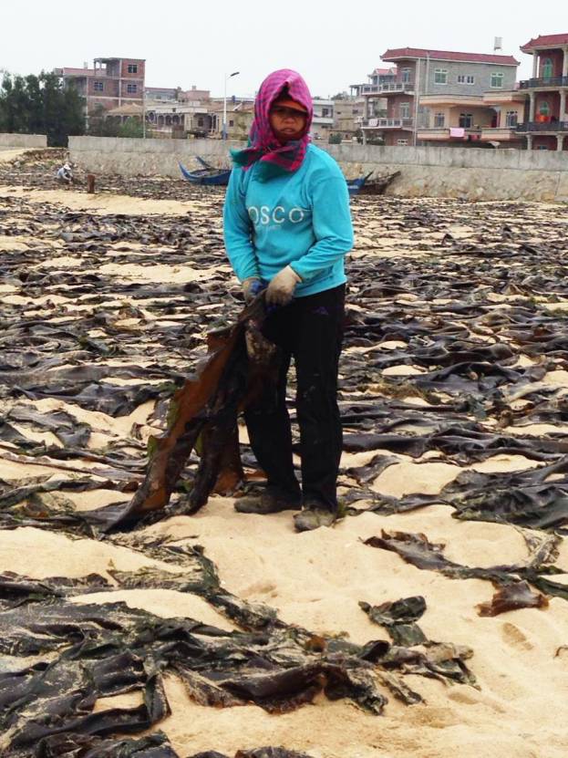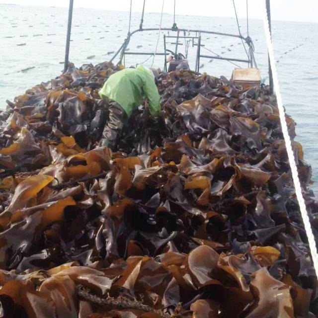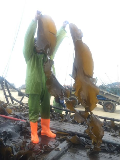 每年4月中旬过后就是海带收成的季节,海带收成时间25-40天左右,必须在6月中旬前收成完,否则到了时间,南风天大浪,台风季到来,大浪冲击下未收上岸的海带便会全部掉落海里。海带收成的季节又最怕阴雨天气,海带捞上来后,若遇雨天,海带便会溃烂,只能当垃圾掩埋,这是海带养殖户最怕的事情,所以海带收成期间,时时都要关注天气预报。由于南日岛地处远海之上 ,海带碱性更高,大多采用摊晒在沙滩上,沙滩容易受热,地面热,太阳晒,这样更容易干。