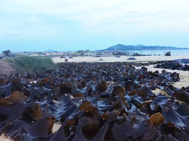 到了收海带的季节,沙滩上就异常壮观了,万船齐发呀,零晨二三点就出海捞海带,赶在太阳冒出前上岸**波,然后再往返几次,**在9点前把海带都铺到沙滩上,这样就能晒足一天的太阳,最理想的就是有大太阳,晒一天就可以入库,那大概是海带养殖户们最高兴的事了!
