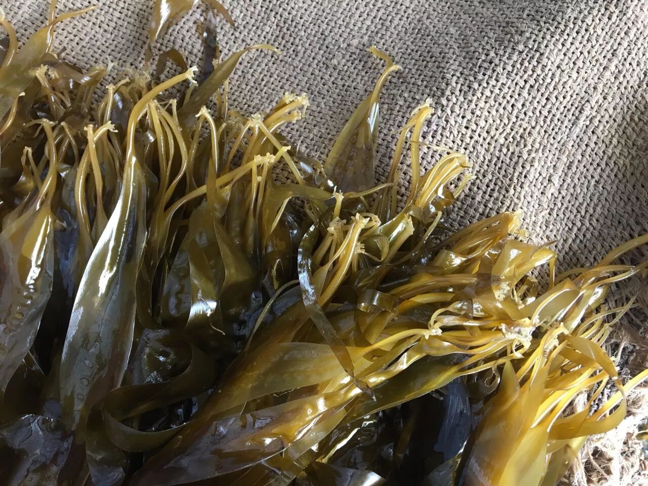 海带分苗完后,未用完的苗依然在海里暂养,这时就可以拿来吃了,将海带用沸水捞过,再分袋速冻,可以保存一年之久,随时取用。可炒、可煮汤、可火锅、可煮面,海带苗鲜嫩可口,带有浓烈的海味,无论你用什么方式烹饪,它都绝不逊色于任何青菜。