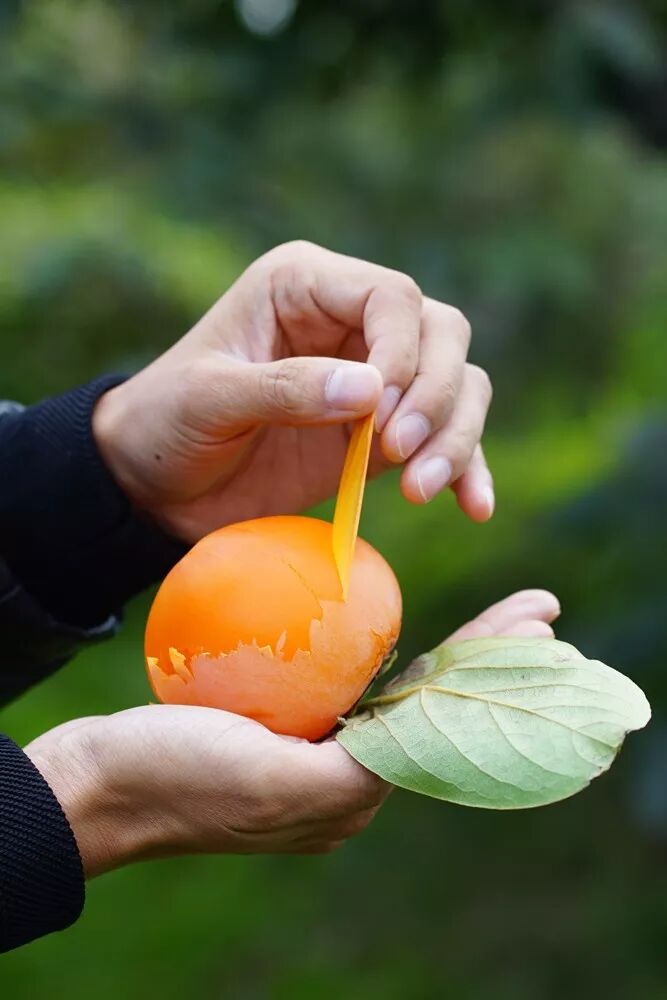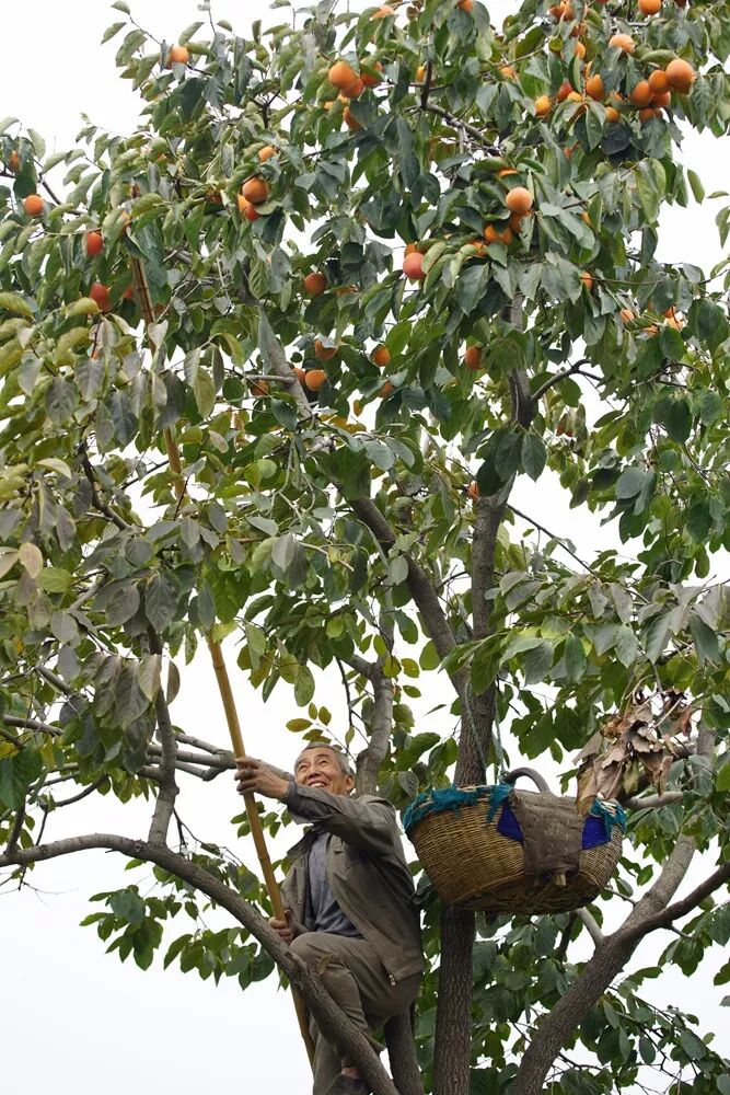 霜降过后采摘,采摘时将柿子连结果枝一起采下(务须轻放,防止碰伤)。