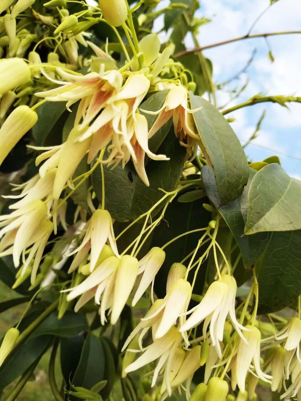 五叶木通是一种中药名(又名香蜜果,钝药野木瓜,牛卵坨),为木通科木通属植物五叶木通的藤茎。这款植物分布于湖北、福建、广东以及云贵川等地。中药药性是清热利湿,通经活络,有镇痛的功效。木通果在福建本地俗称“牛卵坨”,秋冬季节挂在藤上,未成熟时为绿色,成熟时果实颜色为金黄色。外表像芒果,内部果肉略像成熟软柿子,籽像西瓜籽。