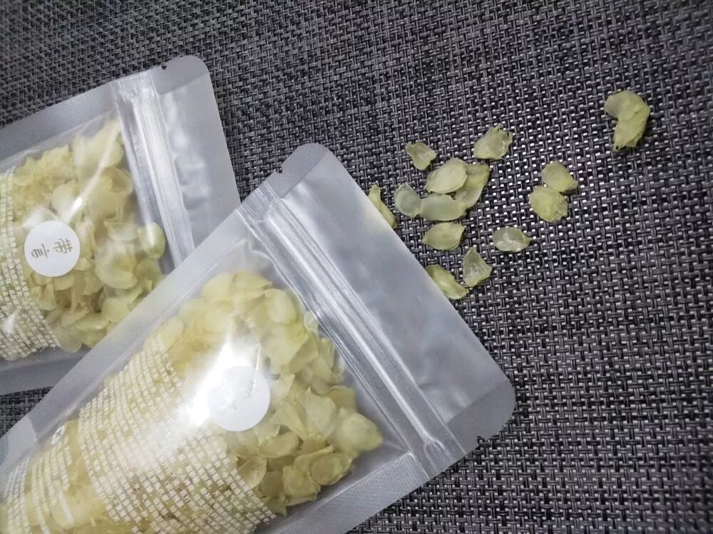 晒干的单荚皂角米的颜色呈浅白色,米粒大小薄如指甲,口味润滑,味道香浓,随着本地野生皂荚树的自然淘汰,现在荷花乡的单荚皂角米已经越来越稀少了。