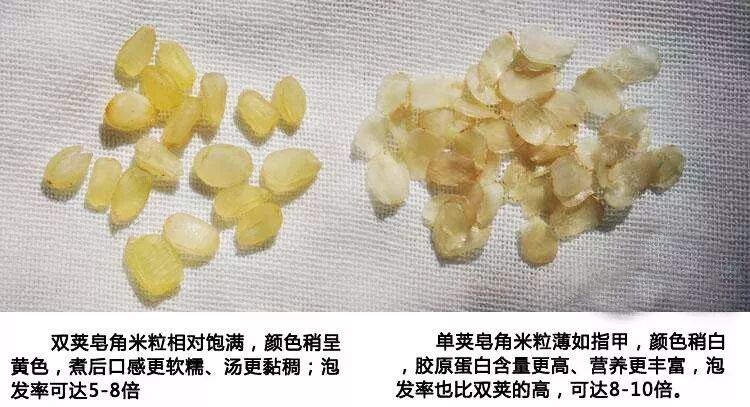 皂角米分单荚皂角和双荚皂角,双荚皂角米大都产自贵州,颜色淡黄色,泡发率可达4-6倍。单荚皂角大部分都是云南野生,很少有栽培,粒薄如指甲,颜色浅白如玉,味道浓郁、口感黏糯、润滑;泡发率比双荚更好,可以发到8-10倍,单皂角的胶原蛋白要高于双泡荚,也叫滇皂角仁。皂角米在市面上通常是以干品出售,秋季果实成熟时采收,剥取种子晒干,食用时甜咸均可,加入银耳、大枣、枸杞、红糖等炖煮,加入棒骨、玉米、莲子等煲汤,都是养颜静心的珍汤饮品。