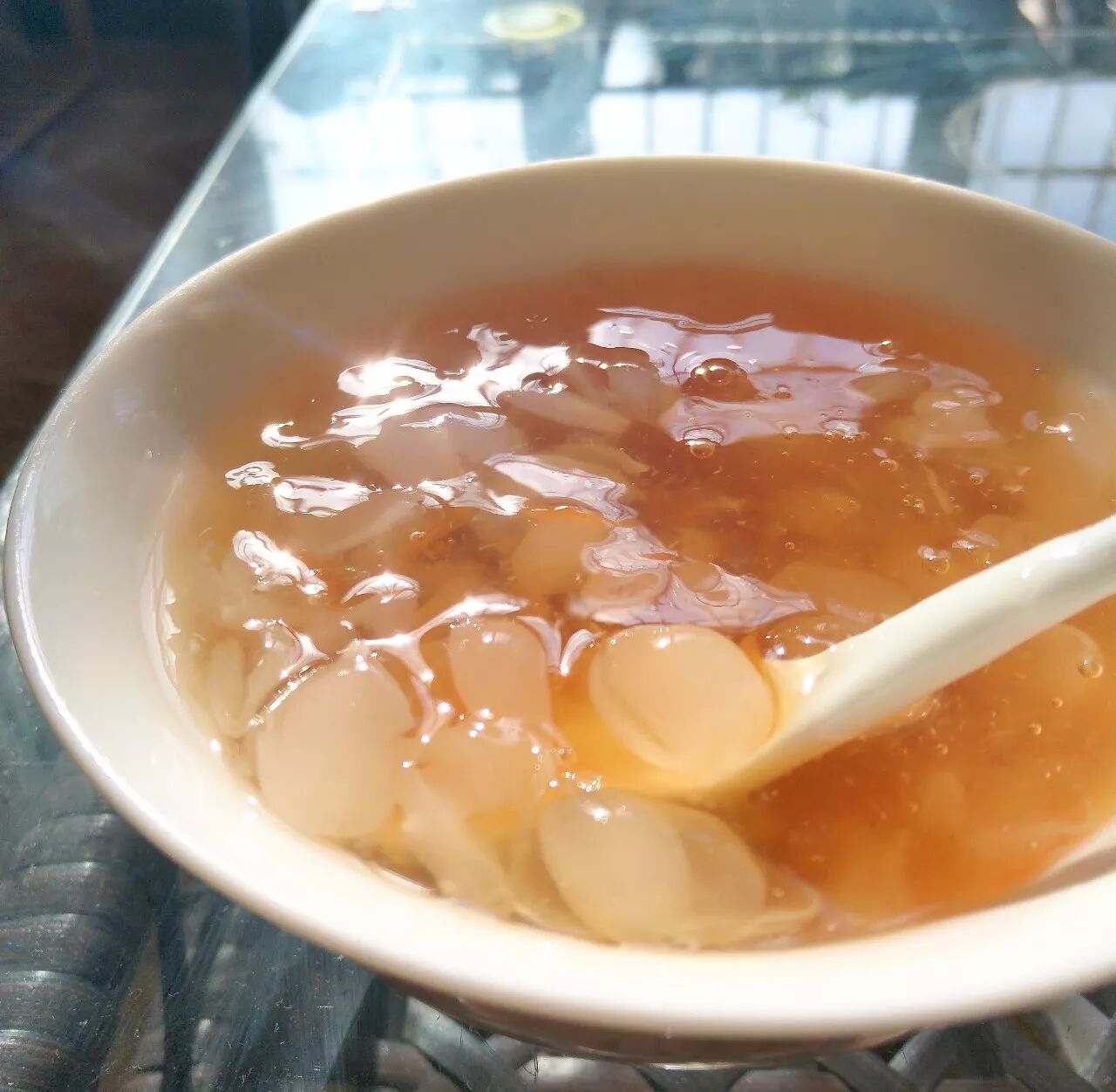 在上蔺寨皂角米的传统做法很简单,用冷水浸泡一夜干皂角米,把泡发好的皂角米搭配大枣、枸杞、莲子、银耳,煮熟加冰糖放进锅里再煮30分钟左右,一锅皂角银耳羹就煮好了,滑润糯香,味道鲜美、营养丰富,皂角米因为稀有在小蔺家里只有等到办喜事的时候才有机会吃得到。
