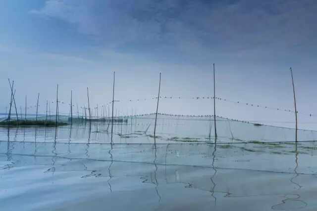 每次坐船行驶在高邮湖上,在湖水深处总能见到渔民们用竹竿、绿网等物品搭建的围网,一个挨着一个连接成片,颇为壮观。快艇穿行其间,七拐八拐,开船的王师傅笑着说这里是迷魂阵,准保是让螃蟹进得来,出不去。