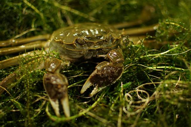 不大爱讲话的人,都有一颗善于思考的大脑。蟹塘里生长的水草是螃蟹们的天然防御敌人的屏障,又是可口的素餐。然而,扬州的春季短暂,夏季漫长炎热,天热之后水草开始疯长,茂密的叶片覆盖了大部分蟹塘水面,将导致蟹塘底部处于缺氧状态,这对于螃蟹来讲是致命的。见此情形,王俊就琢磨着寻找解决的办法,在细心查阅各种水生植物书籍之后,他特地找来六种水草分别种植在蟹塘中,认真观察记录水草生长情况。有人笑他傻,说你跟水草叫什么劲儿?然而固执的王俊不肯作罢,在经过一年半的反复观察研究之后,他终于找出三种最适合螃蟹生长的水草,利用水草错时生长的特性,使得螃蟹在不同的生长阶段都有鲜草供应,也减少人工打捞成本,而蟹塘的水质也能长期保持清澈。