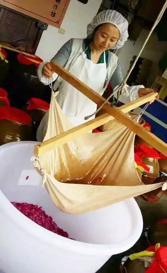 逢年过节云南人都喜欢用玫瑰酱来做糕点、月饼、元宵的馅料或糖稀,它是云南人饮食里埋藏的一味惊艳。杨金黎的奶奶做的小吃在喜洲镇上是小有名气的,每逢花季街坊四邻都会请奶奶帮着多做一些,就这样除了满足自家喜洲粑粑馅料的需要、再给街坊四邻分分、再有余下的就让妈妈装瓶供镇上的游客选购。所以每到花季杨金黎家的院内、门外摆满了玫瑰花,引得蜜蜂满院都是。奶奶说清早摘的花最香甜、最鲜嫩,是因为清早花香味最浓,在没有被紫外线照射前能**程度的保留花青素。所以街坊送来的花她一闻就能辨别采摘的时间,再好的关系如果花不合格她是不会代做的。经过她细心挑选的玫瑰花瓣,首先用蜂蜜浸,然后用糖浸,这时要控制好蜜和糖的比例,再加梅卤(梅子加盐后自然发酵的纯植物酸性调节剂)、食盐和白酒,然后装土缸自然发酵,陈放的时间越长花涩味越低,口感及花香味越浓。娇艳欲滴的玫瑰花变成了美味,而此时的玫瑰花香依然浓郁,同时多了一份甜蜜且更容易存储了,在没有接触到油脂的情况下,玫瑰糖不需要添加任何防腐剂,而且多年存放都不会变质还会越陈越香。