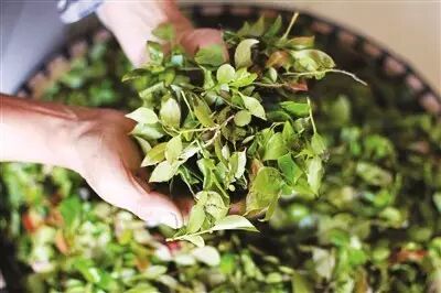 每天早上五点半就要起床上山,野生南烛叶一般都在山顶灌木丛,刚开始采叶子没有经验不知道哪种地方有,爬上一座高山,山顶少的可怜,往往采几斤叶子要爬几座高山,十年时间,已经跑遍了家乡大大小小不计其数的山脉,他甚至知道哪座山哪个地方有南烛叶,大致多少棵树。每天按量采摘70-80斤,一部分新鲜的叶子包装好发往全国各地,供各大城市的顾客体验DIY的乐趣!一部分留下来制作乌米饭干,由于长年累月接触南烛叶,手指已经被染黑,差不多洗不掉了。采摘乌饭树叶,不用刀具只用手,食指拇指轻轻一捋,叶子和茎一同摘下,叶子摘了长起来很快,但是也要注意不能伤到根部和枝干,这样才能保证持续有新叶供应。