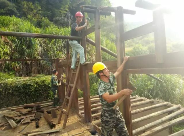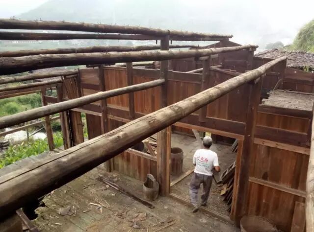从2016年开始我在继续做笋的同时开始规划施工“瑶居”民宿,根据我们因地制宜、土生土长的原生态方案,保护开发本地木屋是最具有代表性的。我们在村里寻找合适的老木屋,秉着拆旧还原的原则,努力保留还能用的一板一瓦。父亲虽然脚痛还是坚持着到山上和妈妈背来一根根大木头,还有很多做楼行和横条的木头都是靠我们肩膀一根根背回来。建筑的主体框架不变,然后采用木材加大玻璃的落地墙,做成既风格混搭的老瑶居,简约而不简单是我们的目标。